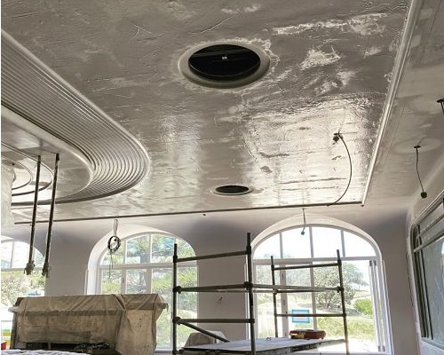 Supreme Ceilings can also help with any specialist render. Using the product by Fade Plaster this is an acoustic plaster applied with a spray gun. Insulation board is screwed to the ceiling and the plaster render is sprayed over the top. This can be used in any colour.
